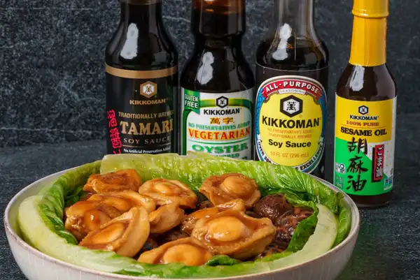 This recipe is brought to you in part by Kikkoman. My dad has been using Kikkoman flavors throughout his 50-year career as a chef, and it's a privilege to get to partner with them on such an iconic recipe, Abalone with Lettuce!