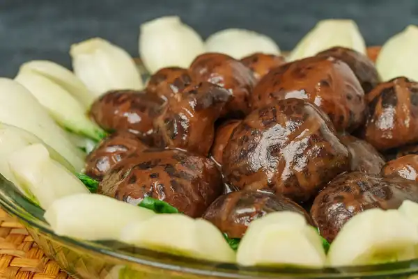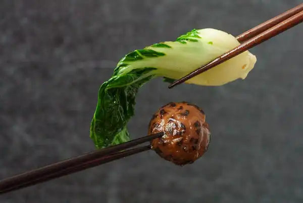 Test the mushrooms for doneness by piercing with a chopstick; if the chopstick goes through the mushroom easily, it's ready.