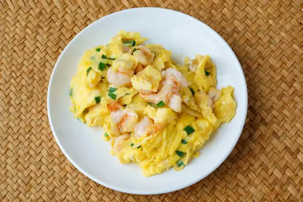 It's quick but inaccurate to compare these with European-style scrambled eggs. Scrambled eggs often get their fluffiness from added ingredients like milk or water, and they're generally cooked by quickly stirring the beaten eggs on low to medium heat, creating curds of eggs with a rather homogeneous color and texture throughout.