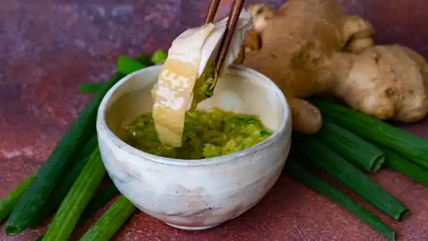 This sauce is one of my all time favorites, and it’s commonly paired with bak chit gai, a classic Cantonese chicken dish. It goes well with meats, tofu, leafy green vegetable stir fries, rice or noodles, and basically everything.