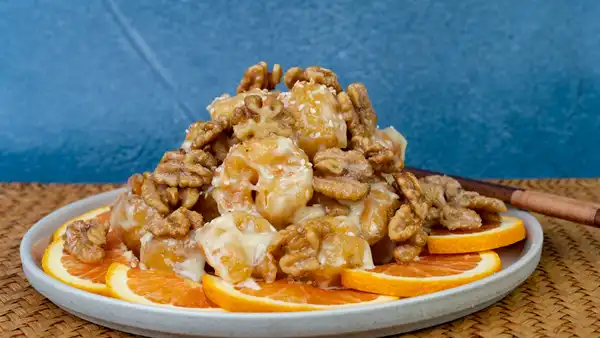 If you’ve never tried honey walnut shrimp before, it’s like the perfect balance of sweet, savory, crunchy, creaminess.