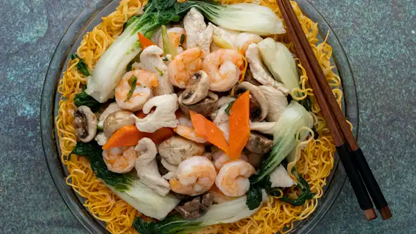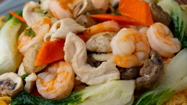 We’ll want to use Chow Mein, also known as Hong Kong Style Pan Fried Noodles. Chow Mein is the ideal type of noodle for the traditional flavor and texture profile we’re going for. They’re thinner than Lo Mein and have less egg content than Wonton Mein.
