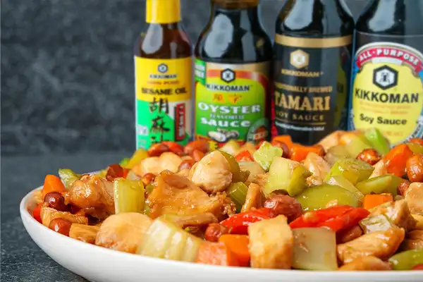 This recipe is brought to you in part by Kikkoman. My dad has been using Kikkoman flavors throughout his 50-year career as a chef, and it's a privilege to get to partner with them on such an iconic recipe, Kung Pao Chicken!