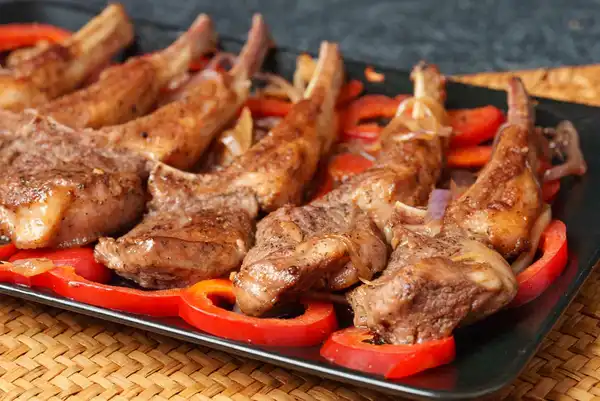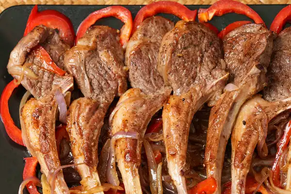 The lamb chops are served on a bed of onions and bell peppers, but if you're looking for more side dishes to go with it, try our Smashed Cucumber Salad or Broccoli Stir Fry.