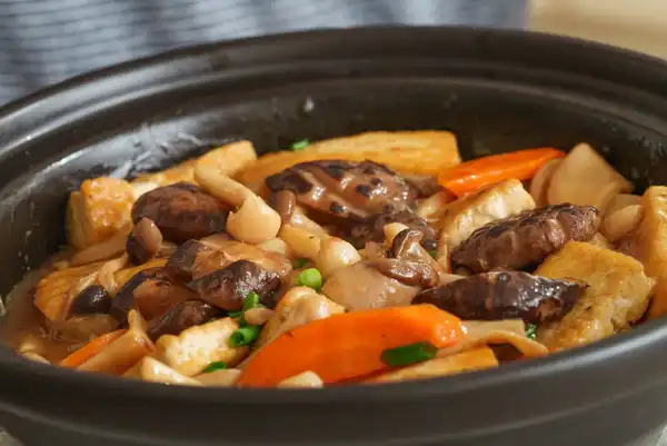 This dish contains oyster sauce, but you can easily swap to a vegetarian oyster sauce to make it fully plant-based. To make a vegetarian spread, serve this clay pot alongside our Buddha's Delight and Vegetable Lo Mein (again making sure to switch out the regular oyster sauce for a vegetarian one). Enjoy with rice to soak up all of that tasty sauce!