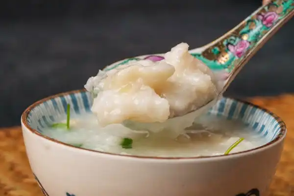 When cutting the fish into pieces, keep in mind you’ll be cooking them by swirling them in hot congee, so you’ll want thin enough pieces that’ll cook through. At the same time, remember that fish is a rather delicate protein, prone to falling apart, so cut the pieces large enough so they’ll have some structural integrity.