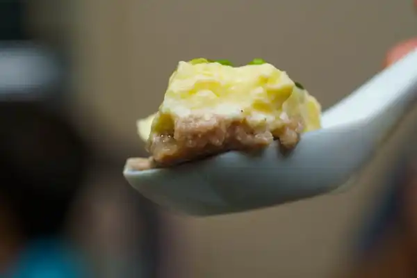- Optionally, pour the eggs through a fine mesh sieve when you add it to the pork.