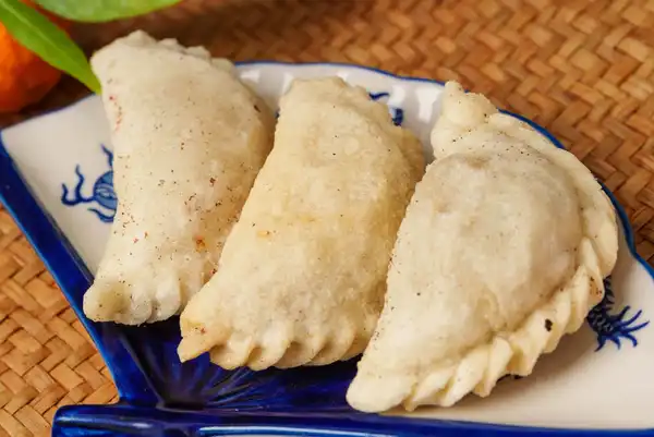 In Toisan, these dumplings are called 鹹雞籠, which translates to salty chicken cage. It refers to the Toisanese practice of bringing a live chicken to family celebrations. The shape of the dumpling is reminiscent of the cage that was used to transport poultry and keeps the festive symbolism of sharing the abundance of what's inside.
