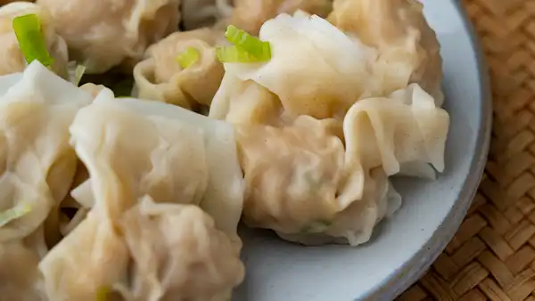 To flavor the filling, our wonton recipe calls for cornstarch, salt, sugar, white pepper, oyster sauce, water, chicken bouillon, sesame oil. Check the ingredient list above to see precise amounts. Don't forget that you can scale the recipe up and down!